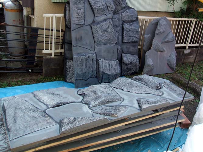 さて…朝からは、岩パネルのマチエルと色塗りです。