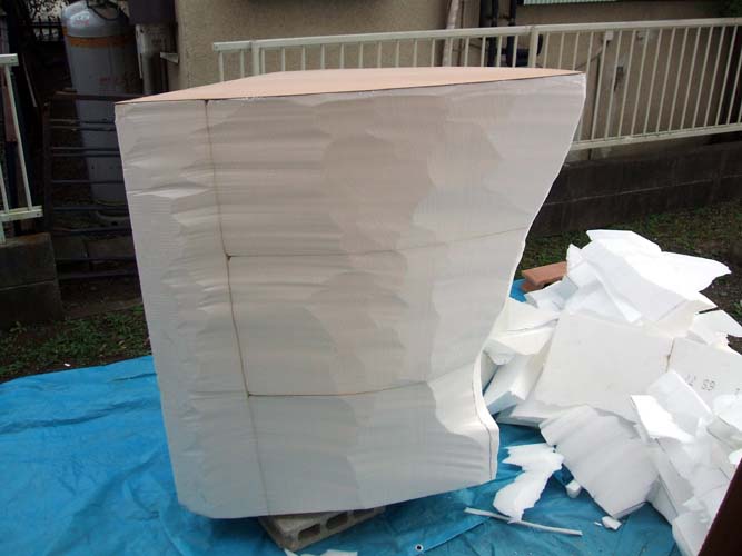 スチロールの塊に…ラテックスを塗り山!の図!!