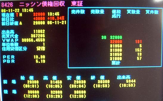 昼の休憩時間に、携帯で見てしまった…ニッシン債権の株価…